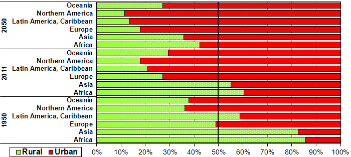 Source: United Nations, Department of Economic and Social Affairs, Population Division: World Urbanization Prospects, the 2011 Revision. New York, 2012