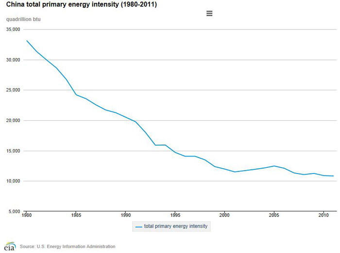 The world’s largest CO2 emitter, China, has a similar trend to the UK. Since the adoption of an energy efficiency policy in the 1980s, its energy intensity decreased dramatically, while its energy consumption increased (Figure 6).