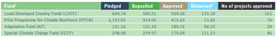 Table 1: Funds exclusively supporting adaptation 2003-2013 (source: Caravani et al. 2013)