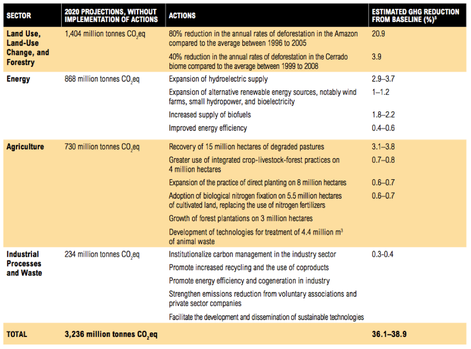 Table 1: Brazilian Baseline Projections for 2020 and Estimated GHG reductions